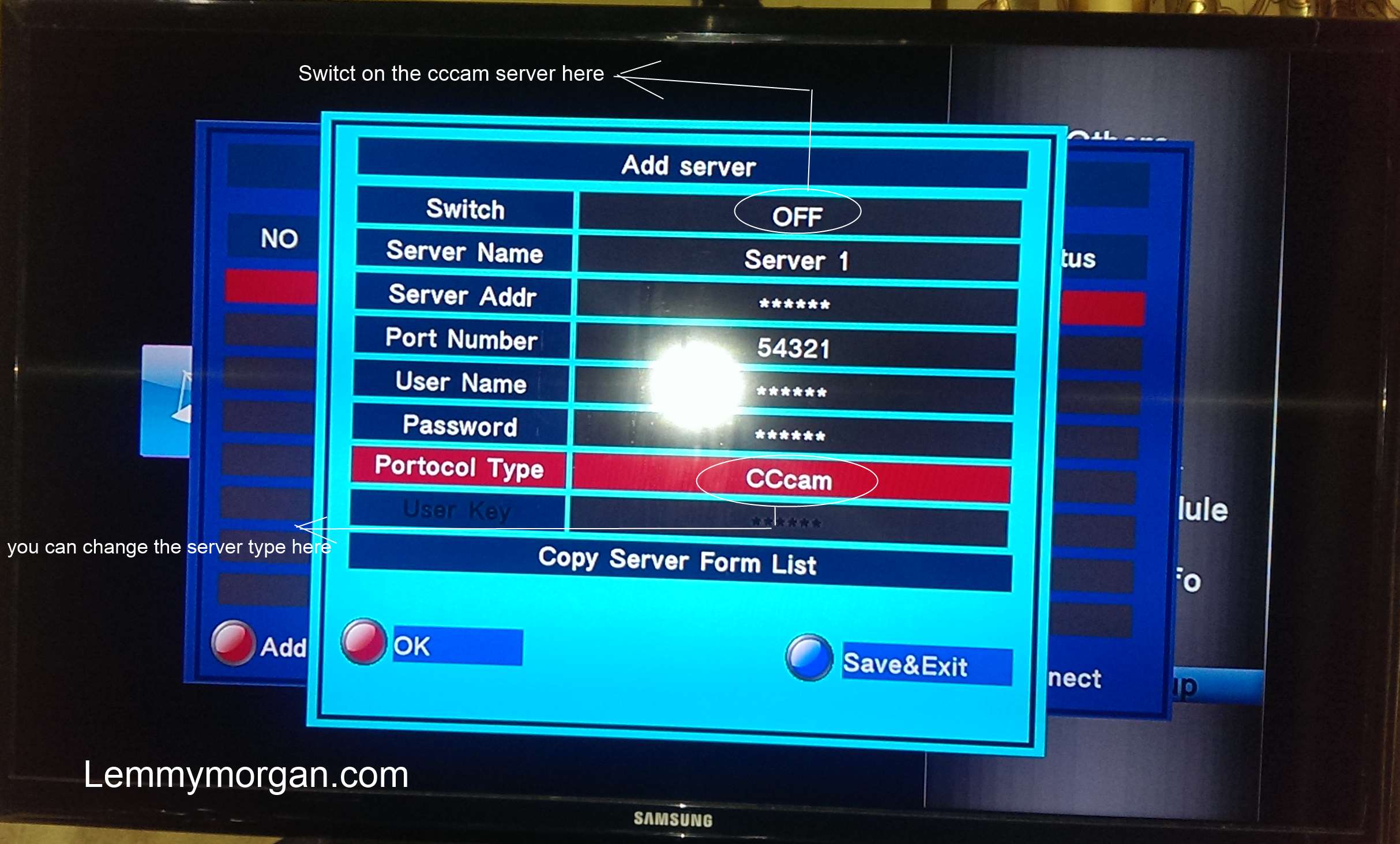 the picture above, you will have to fill your cccam account details