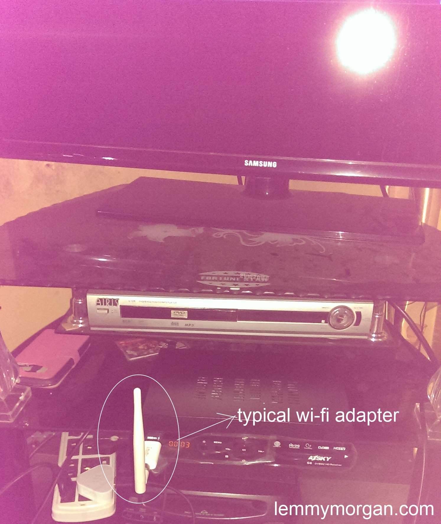 - The third and the most important prerequisite is that you will need to buy a W-FI Adapter. This wi-fi adapter will be attached to your G6 as shown below, and it is what will equip your g6, with the capabilities of searching for and seeing a nearby wi-fi hotspot. In other words, without a wi-fi hotspot, your g6 or even qsat will not be able to search for a wi-fi connection. it will only scan for eternity. A picture of a wi-fi adapter that am using is shown below;