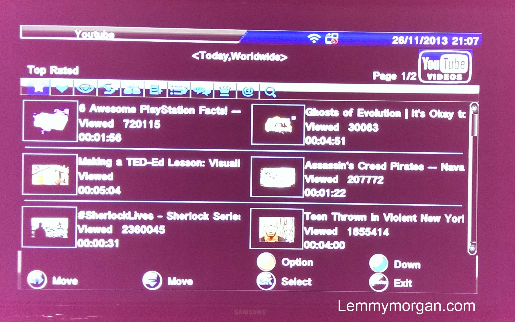 is where you can see internet tv like YouTube. I selected youtube and
